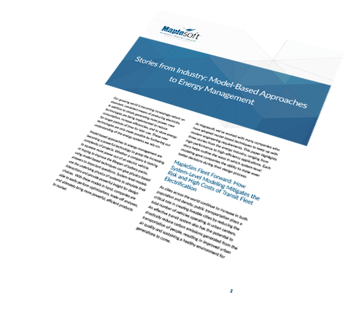 At Maplesoft, we’ve worked with many companies who have adopted model-based techniques to keep up with modern engineering requirements. This whitepaper highlights three stories from the energy industry, ranging from high-performance to high-efficiency applications. Each story helps outline the ways in which system-level modeling gave companies the ability to make even better decisions during their design process.