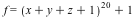 g = Expand[ (x^5+x^3+x^2+x+1)^20 (y^5+y^3+y^2+y+1)^20 ];