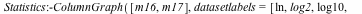 The following lists, m16 and m17, contain the measured times to compute these operations using Maple 16 and 17, respectively. The column graph plots these lists to show the speed up between the two versions.