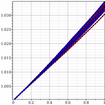PathPlot⁡X⁡t,t=0..1,timesteps=50,replications=20,axes=BOXED,thickness=3,color=red..blue,gridlines=true