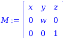 M≔Matrix⁡x,y,z,0,w,0,0,0,1