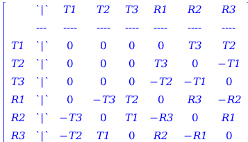 L ≔ e1,e5=e3,e1,e6=e2,e2,e4=e3,e2,e6=−e1,e3,e4=−e2,e3,e5=−e1,e4,e5=e6,e4,e6=−e5,e5,e6=e4