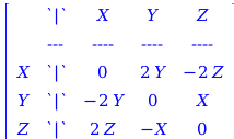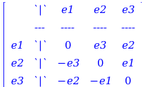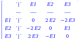 L ≔ e1,e2=2⁢e2,e1,e3=−2⁢e3,e2,e3=e1