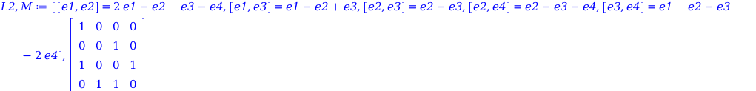 L1 ≔ e1,e4=2⁢e1,e2,e3=e1,e2,e4=e2,e3,e4=e2+e3