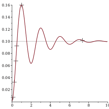 peak-point: where response first reaches the peak value If the peak does not occur, [undefined, undefined] is returned. If the step is negative, the peak is in the negative direction. If the step-size is zero, the peak is at the greatest excursion from the initial value, regardless the direction.