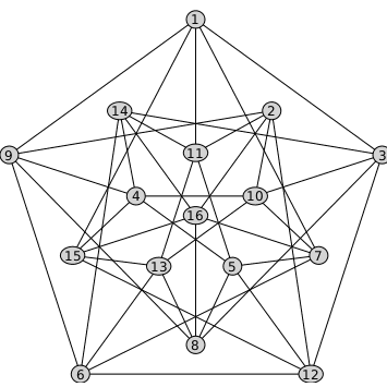 C≔Graph 1: an undirected graph with 16 vertices and 40 edges
