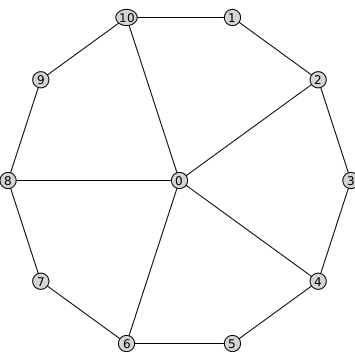 The GearGraph(n) function creates the gear graph on 2n+1 vertices.