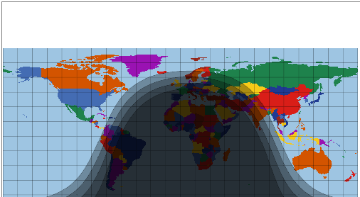 Choose values for Color Scheme, projection and grid line to get terminator display on different projections with different options.