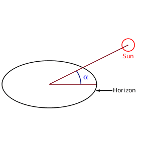Twilight can be categorized based on the degrees of the angle of the sun below the horizon, which can be described with elevation angle.