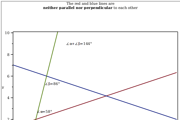 Mathematically, the determination of whether two lines are parallel to each other, perpendicular to each other, or neither is based on their slopes.