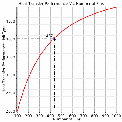 To achieve a heat transfer performance for our proposed design equal to that of the current design ( that is, 4025 Btuminute ≈70729.3Js), we must increase the number of fins per row. The procedure called DetermineNumberOfFinsq__cur, defined within the Code Edit Region, calculates the number of fins per row needed to achieve the desired heat transfer performance for our assembly.