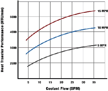 A heat transfer performance of 4025 Btuminute was obtained using a coolant volumetric flow, air volumetric flow and air velocity of 30 gpm, 2349 ft3minute, 10 mih,respectively.