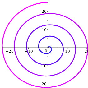 plotx*sinx, x*cosx, x=0..8*Pi, colorscheme=linear, Blue, Magenta, colorspace=Lab, thickness=3;