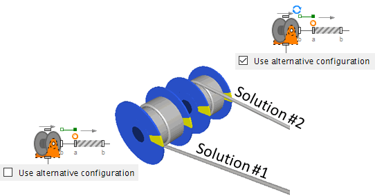 To select one of the two possible solutions, use the option Use alternative configuration on the Winch 3D component.