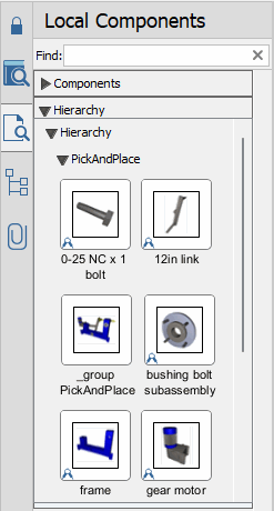 CAD subsystem definitions are found in the Hierarchy palette under the Local Components tab ( ).