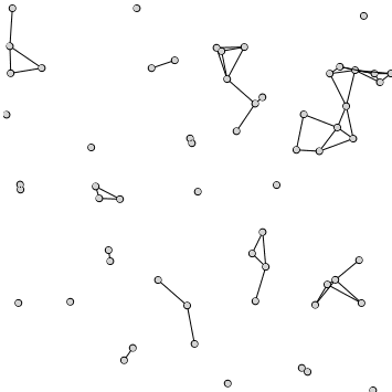 Generate a set of random two-dimensional points and connect edges when the Euclidean distance between them is less than or equal to 10.