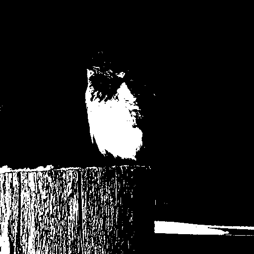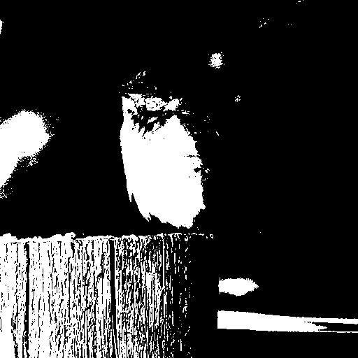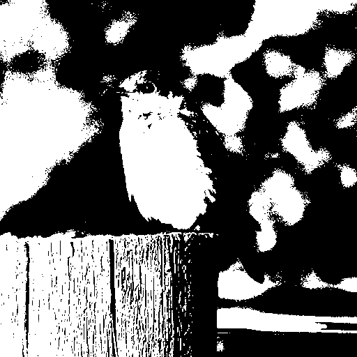 By using a codebook with only two values, 0 and 1, we can convert the image to black and white: