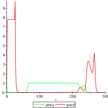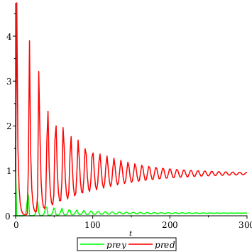 ddesys := {diff(pred(t), t) = 10*pred(t-tau)*prey(t-tau)-(1/2)*pred(t)-(1/10)*pred(t)^2,