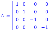 A := LinearAlgebra:-DiagonalMatrix([1,1,-1,-1]);