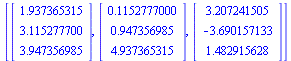 Triangle is brought into coincidence with triangle by a rotation of about an axis that is through vertex and normal to the plane containing . The angle of rotation is the angle between any pair of corresponding sides. Hence, we must obtain a pair of edges as geom3d lines, and for this, we need the vertices of triangle as geom3d points. Actually, all we need is the vertex and the lines through and , and and . Recall that the first such line was obtained in Step 2 of Method 1, but we repeat that calculation here for the convenience of the reader.