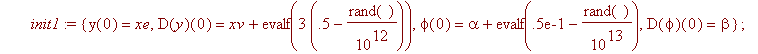 The number of cicles ("ciklusmax"), the initial conditions (xe, xv, , ), mechanical parameters ("parameter") and the number "N" of stpes by RKF45 method: