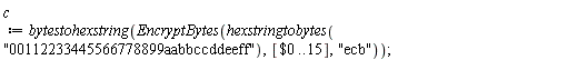 Later, we will give tests to check the behavior of these functions against known values. For now we give, as a very simple example, the result of encrypting and decrypting the example vectors in Example C1 (AES-128) of [FIPS197]: