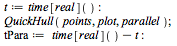 As you can see, the relatively simple modification to add parallelism to the QuickHull algorithm leads to a good speedup.