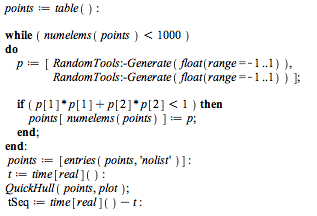 The algorithm can be parallelized by running the recursive steps in parallel. The following code implements the QuickHull algorithm and a parallel QuickHull using the Task Programming Model.