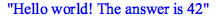 | > | String(s, " world! The answer is ", 7!/5!); |