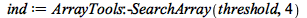 > threshold := map(proc (x) options operator, arrow; piecewise(`<`(x, .1), 0, 1) end proc, c); -1ind := ArrayTools:-SearchArray(threshold, 4)