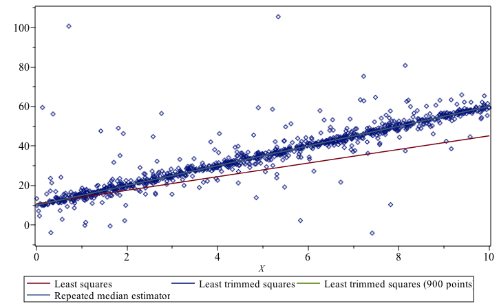The LeastTrimmedSquares command computes least trimmed squares regression for some data.