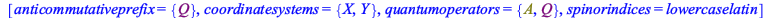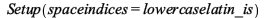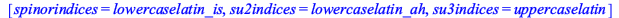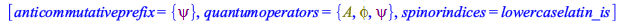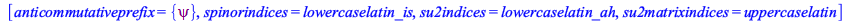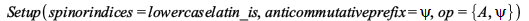 Set lowercase Latin letters from i to s to represent spinor indices (you can change this setting according to your preference using Setup), also the (anticommutative) spinor field will be represented below by