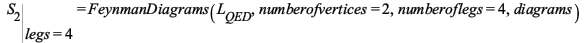 In practice, the most common computations involve processes with 2 or 4 external legs. To restrict the expansion of the scattering matrix in coordinates representation to that kind of processes use the numberofexternallegs option. For example, the following computes the expansion of