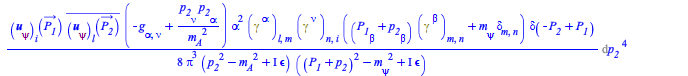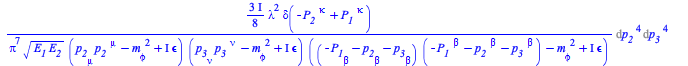 In the above, for readability, the contracted spacetime indices in the square of momenta entering the amplitude F (as denominators of propagators) are implicit. To make those indices explicit, use the option putindicesinsquareofmomentum