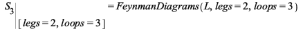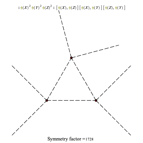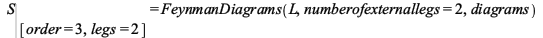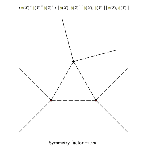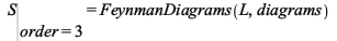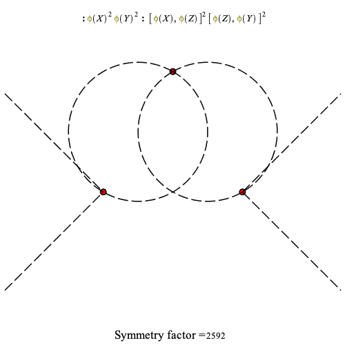 in coordinates representation, computed by default up to order = 3 (you can change that using the option order = n), by definition containing all possible configurations of external legs, displaying the related Feynman Diagrams, is given by