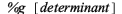Given any 2-rank tensor (representable by a matrix), the design in the Physics package is that its determinant is computed when you index the tensor with the keyword determinant. For example, set the metric g_ to be arbitrary