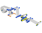 A model of a 2 DOF gripper, which utilizes two pairs of 4-bar linkage mechanisms, is built using the MapleSim CAD Toolbox to import the CAD assembly created in SolidWorks. This gripper is driven by rotational and translational position drivers from the 1-D Motion Generation app.