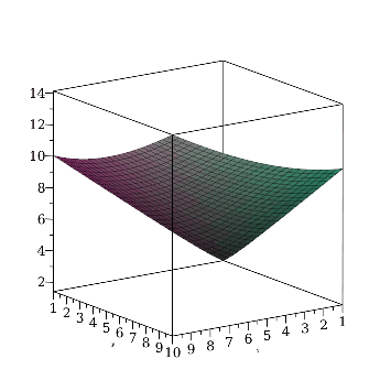 plot3dabsx+y,x=1..10,y=1..10