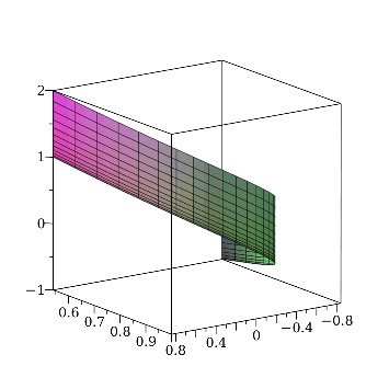 plot3dsinz,cosz,z+y2,x=1..1,y=1..1