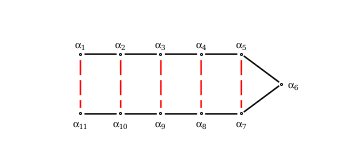 There is one more important piece of information encoded in the Satake diagrams. For this one needs to choose a set of positive roots Δ+such that non-compact positive roots Δ+/Δc+ are closed under complex conjugation. Let Δ0 be the corresponding simple roots and put Δ0 c = Δ0 Δc . Then for each root αΔ0 /Δ0 c, there is a unique root α' such that