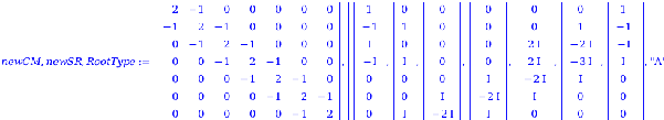 newCM,newSR,RootTypeCartanMatrixToStandardFormCM,SR