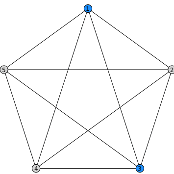 HighlightVertex⁡K5,1,3,stylesheet=font=Courier,bold,14,thickness=3