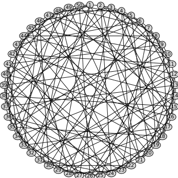 G≔Graph 1: an undirected graph with 50 vertices and 175 edges