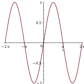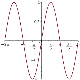 Consider the graph of sinx.  On the horizontal axis, the default range (x=2 π..2 π for a trigonometric graph), default tickmarks, and default labels are shown.