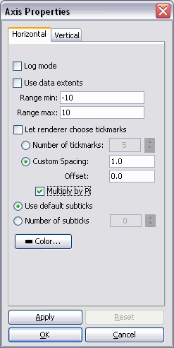 Under the Horizontal Axis tab, clear the box for Let renderer choose tickmarks, and instead select Custom Spacing (1.0) and Multiply by Pi.  The modified graph is shown in Figure 9.