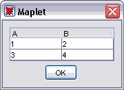 maplet2≔Maplet⁡GridLayout⁡GridRow⁡GridCell⁡Table⁡A,B,1,2,3,4,as_needed,GridRow⁡GridCell⁡Button⁡OK,Shutdown⁡: