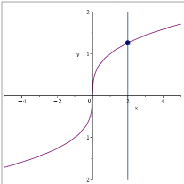 The requirement that each input to a function must produce exactly one output can be used to visually determine when a graph is the graph of a function. Points on the horizontal axis represent the inputs and points on the graph represent input/output pairs. So, if the graph represents a function then a vertical line through any point on the horizontal axis can intersect the graph at most once. This visual check is known as the vertical line test.