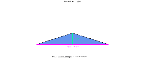 A circle's area can be visualized by a stack of smaller rectangles. Consider a circle inscribed with small inner rings, where each inner ring can be approximated by a rectangle. When stacked on one another, the rectangles assume the shape of a triangle.