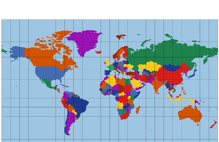 Some terminology will be useful for using this application. Parallels are lines that run east and west with constant latitude, and meridians are lines that run north to south with constant longitude. In the Geographic projection, parallels are horizontal lines and meridians are vertical. Some projections take a parameter for the value they use as the central meridian or standard parallel. The central meridian is the longitude in the middle of the projection, and the standard parallel is a line of latitude along which correct distances are preserved. These parameters can be set in the panel on the right of the map, or by clicking the corresponding location on the map if enabled.