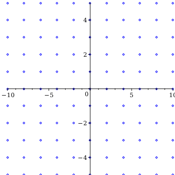 A≔Matrix⁡2,0,0,−1;V≔Vector⁡0,0;L≔Lattice⁡A,V